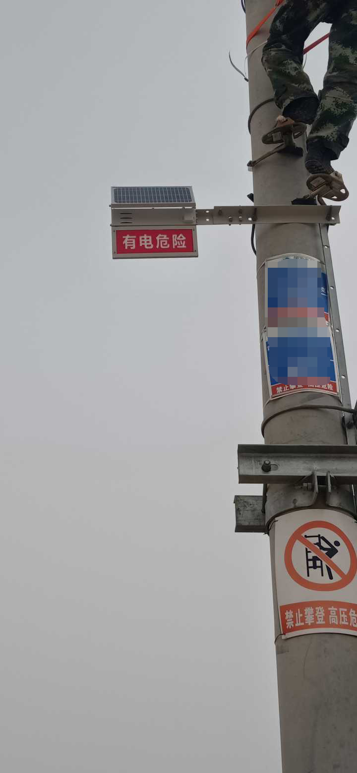 宁夏供电单位采购安装我司(深圳市特力康科技有限公司)高压警示牌,该装置采用太阳能供电及电池供电,白天当有物体接近装置时,设备红外感应??榱⒓雌舳?,由控制系统智能联动语音警示模块,启动警笛告警,提醒行人、注意高压输电线路,夜晚设备则以LED灯标语进行警示。设备支持定时间自动播放警笛以提醒在该线路内的人员。