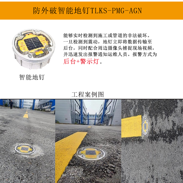 在现代都市中,地下基础设施如同城市的隐形血脉,支撑着城市的正常运转。然而,施工破坏、非法挖掘等潜在威胁时刻威胁着这些“生命线”的安全。传统的监测手段往往滞后,难以提供及时有效的预警。为此,我们创新推出了TLKS-PMG-AGN电缆防外破地钉,这款专为城市地下基础设施设计的智能监测装置,以先进的预警机制和高精度监测技术,为城市地下安全筑起了一道坚实的防线。