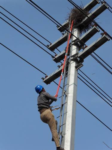 “现在生态环境好了,却给线路安全带来的隐患变多了。我们每天平常都要清理大约三至五个鸟巢,有时候甚至能有几十个。捣鸟窝,对供电职工来讲,就是‘排雷’” 。清理完一个鸟窝的运维组长说道。