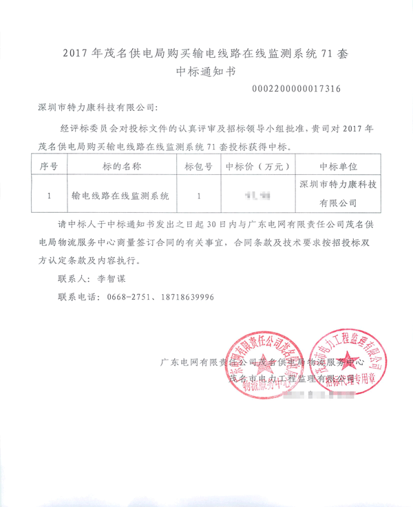 特力康中标国网黑龙江送变电工程公司的2024年度第18次物资类竞争性谈判采购项目——庆阳驱鸟器物资框 特力康中标国网甘肃省电力公司省管产业单位2024年第五次物资竞争性谈判授权采购项目 中标喜讯:深圳市特力康科技有限公司成功入围许继集团综合能源公司输电线路视频在线监测装置??榧上钅?/span> 中标喜讯:特力康成功中标国网重庆市电力公司渝中一片区项目 特力康成功中标国网天津市电力公司2024年第二次?物?资招标项目 特力康中标国网安徽省电力有限公司芜湖供电公司2024年3月非物质采购项目 特力康输电线路微波覆冰在线监测装置,守护湖北电网寒冬安全 特力康架空输电线路导线弧垂监测装置,守护湖北输电线路弧垂安全 特力康输电线路防外力破坏系统,为江西境内绵延的输电线路筑起“主动防护屏障”。 特力康北斗杆塔倾斜在线监测装置,守护山西电网杆塔稳定 特力康高压输电线路导线覆冰在线监测装置,为河南电网覆冰护航 鄂电稳线“哨兵”:特力康舞动监测装置守护超高压线路舞动安全 重庆变电站“防鸟卫士”:特力康一体化驱鸟器守护山城电网 特力康输电线路智能AI多目监控装置+倾斜监测守护山西输电生命线 鄂网“全景眼”:特力康一体化视频监控系统守护输电线路 山东电网 “稳塔哨兵”:特力康智能杆塔倾斜监测预警装置筑牢电力杆塔安全防线 宁夏配电线路安装了我司防外破电子化智能警示牌