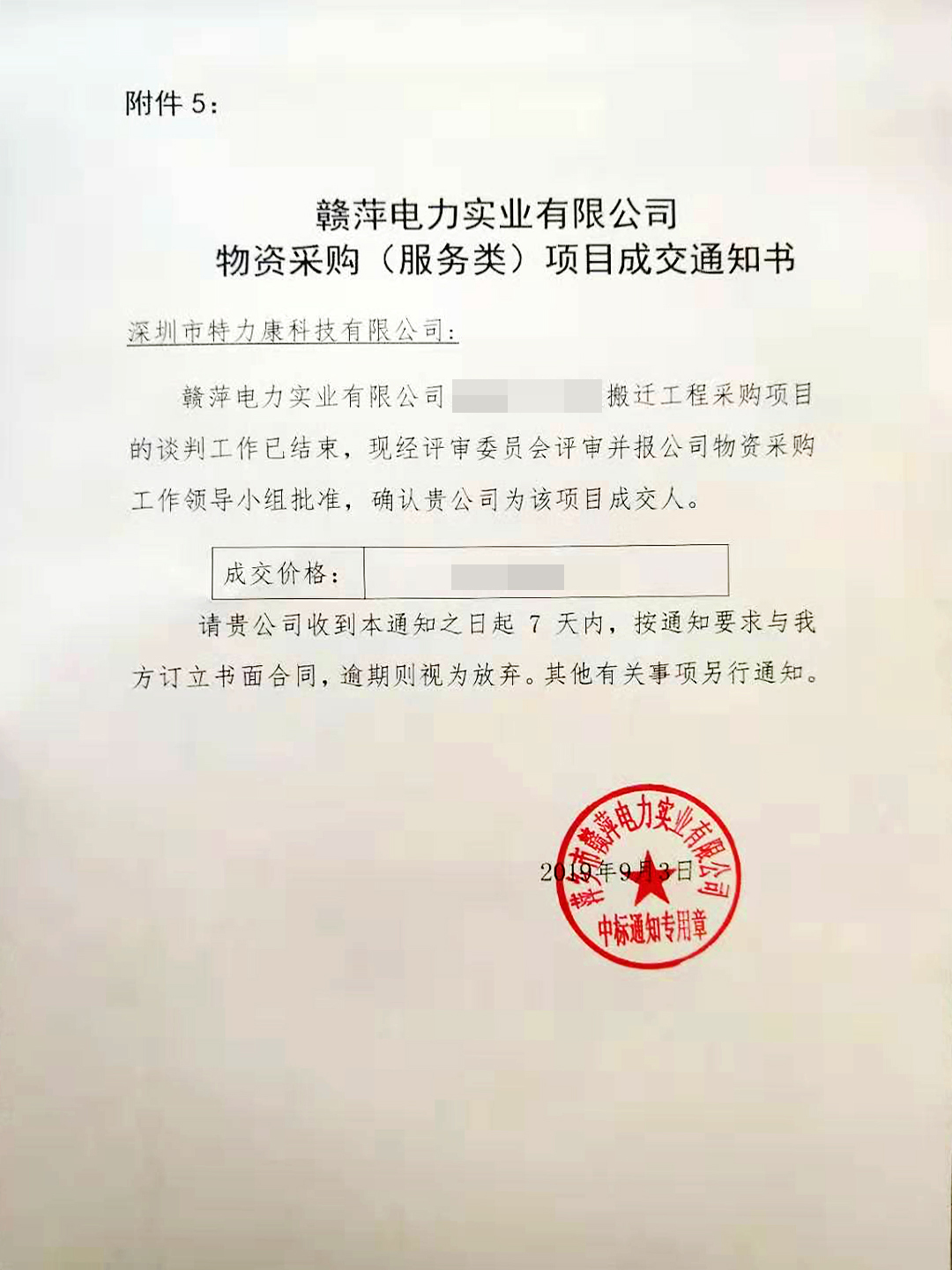 赣萍电力220KV线路搬迁工程采购项目谈判工作已结束,经招标评审委员会评审,现确定我司以此次线路搬迁工程中标单位。